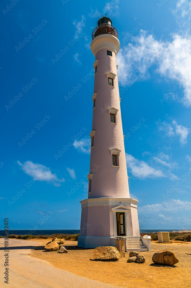 A view of the California Lighthouse on the northwestern Atlantic coast of Aruba on a bright sunny day #1936822471