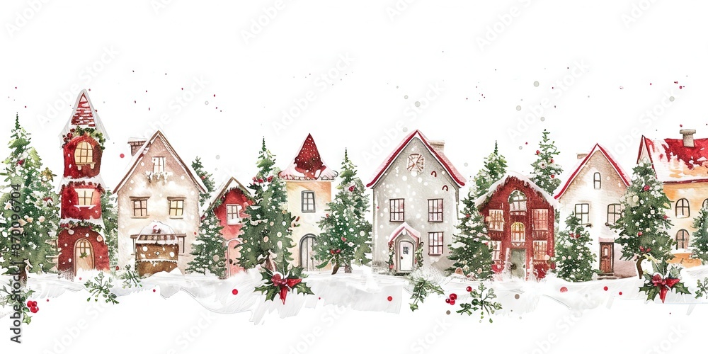 A watercolor of a christmas village, #870096704