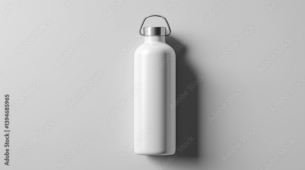 A white water bottle with a silver handle #1394685965