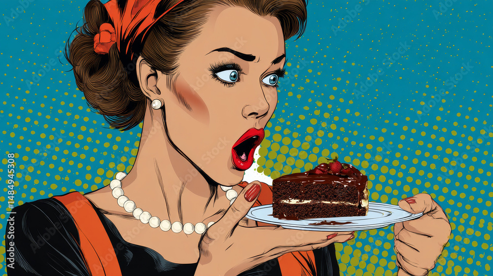 A woman and a dessert a piece of cake. The surprise treat food #1484945308