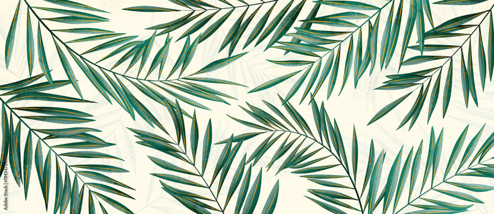 Abstract art background with palm leaves. Botanical banner with exotic plants for decor, wallpaper, prints, posters, textiles, packaging, and interior design. #1943470499