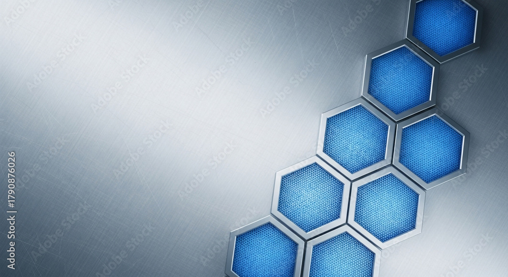 Abstract background with blue hexagonal pattern on a metallic surface, creating a modern and futuristic design #1790876026