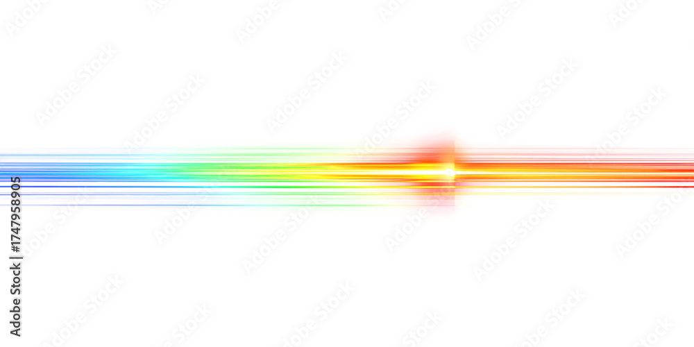 Abstract Beam of Light: A vibrant display of spectral colors, with a bright central core, that forms a dynamic line across space, illustrating energy, velocity, and the essence of speed. #1747958905