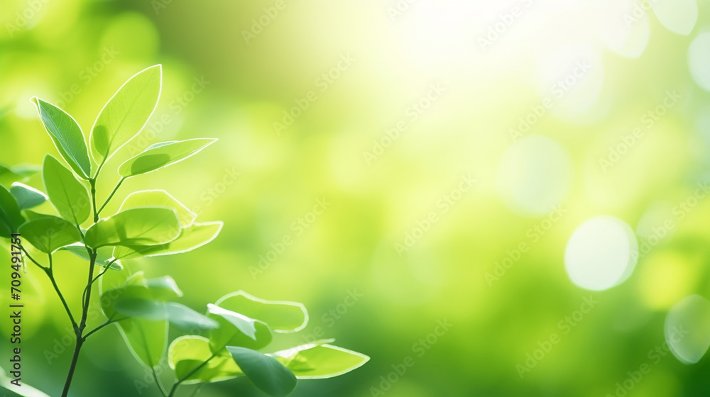abstract bio green blur nature background trees lush oliage in the park at morning with sunlight. #709491751
