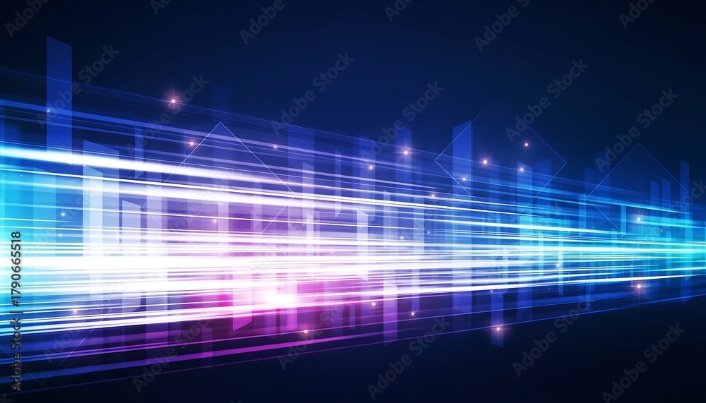 Abstract blue and pink light streaks moving fast creating a sense of speed and technology #1790665518