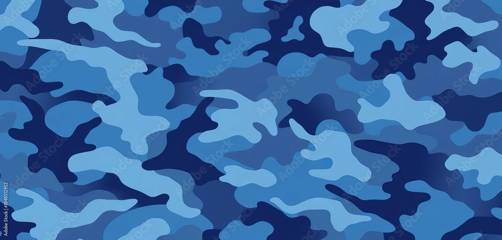 Abstract blue camouflage pattern with varying shades of blue, creating a dynamic and modern disruptive design, sky blue, seamless #1848512952