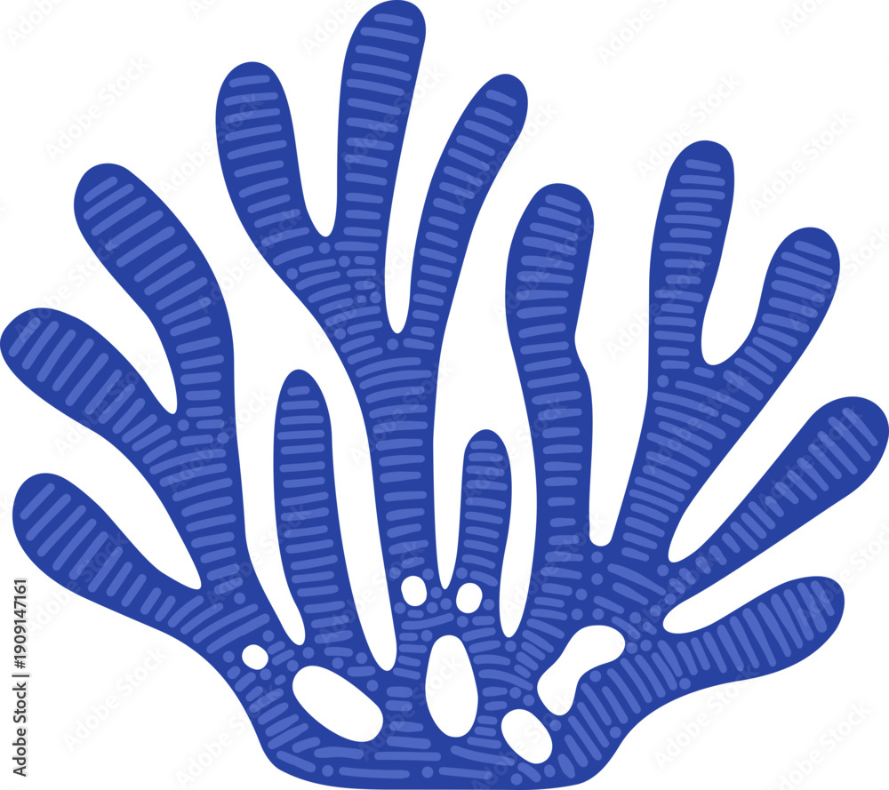 Abstract blue coral reef element, a unique brush painting capturing the organic flow and vibrant textures of an undersea plant illustration #1909147161
