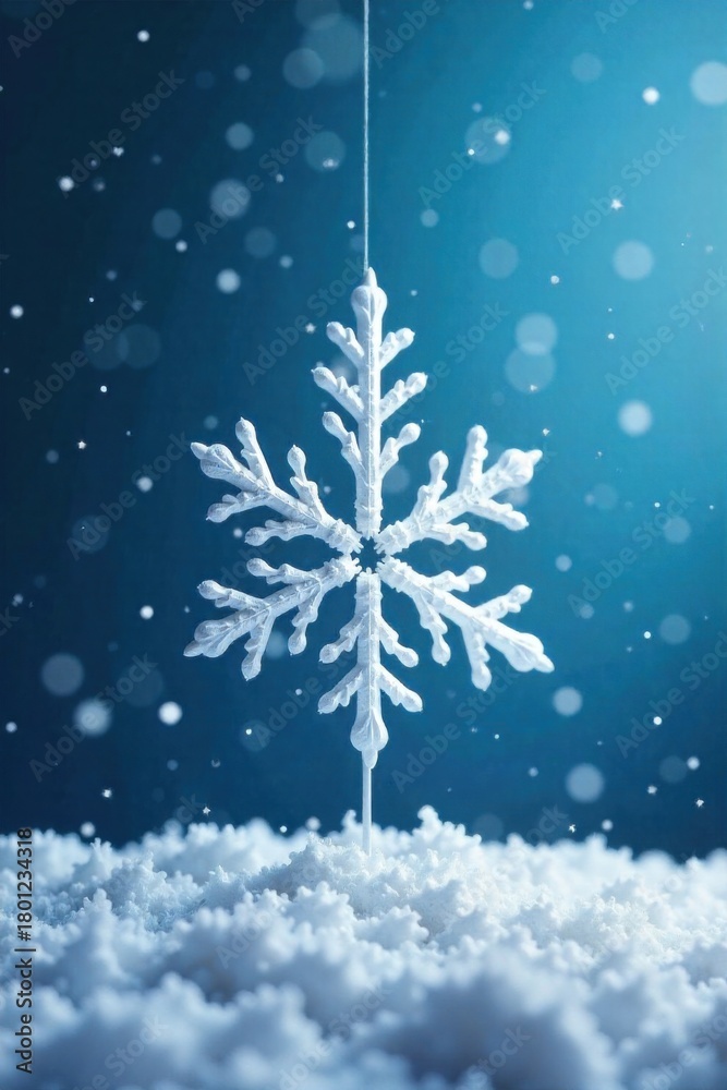 Abstract Christmas Tree Snowflake Geometric Design with Falling Snow Effect An abstract, geometric snowflake with sharp, precise lines forming a stylized Christmas tree shape. The snowflake is a crisp #1801234318