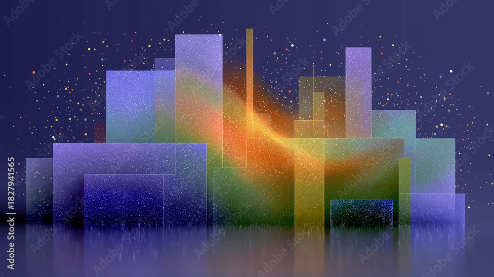 Abstract Cityscape: A vibrant, geometric cityscape bursts with color, evoking a sense of modernity and innovation, featuring geometric shapes and colorful structures. #1827941565