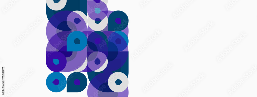 Abstract composition featuring overlapping purple circles. Minimalist design with negative space, modern aesthetic. Simple shapes create visual interest. #1923583992