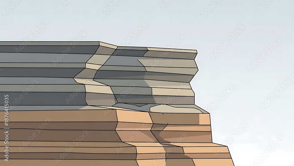 Abstract depiction of rugged geological rock layers, showcasing natural stratification and erosion #1876415035