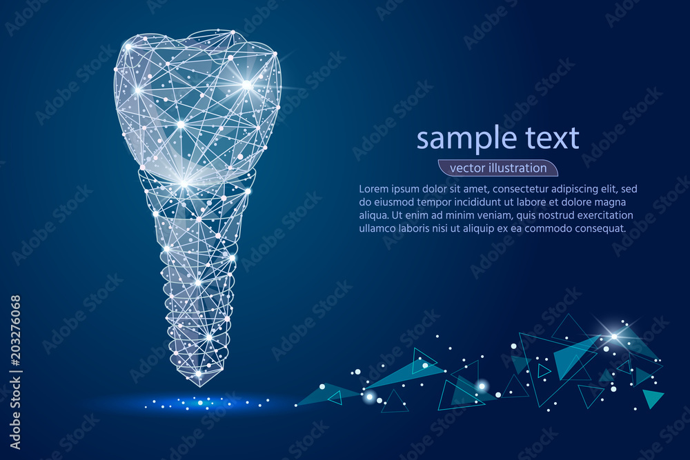 abstract design dental implant Icon,isolated from low poly wireframe on the background of space . Vector abstract polygonal image mash line and point. Digital graphics #203276068
