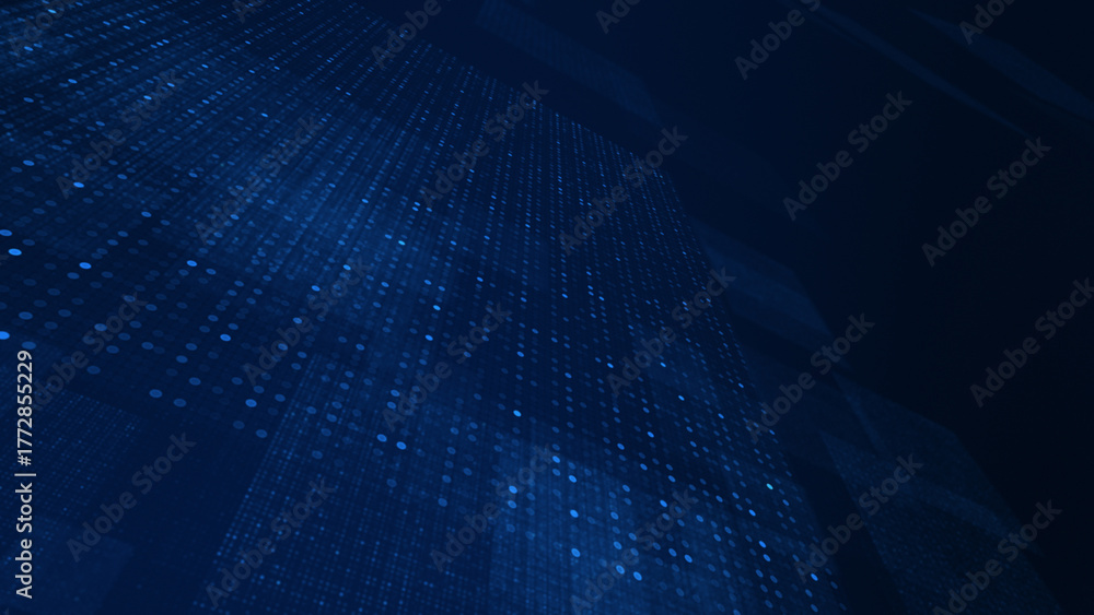 Abstract digital background with a grid of blue dots and lines in perspective. Represents technology, data, network, or science concepts. #1772855229