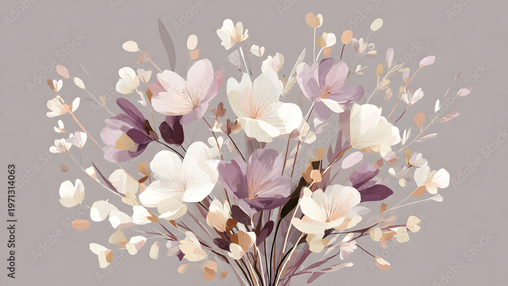 Abstract floral bouquet vector with clean lines, muted lavender and cream palette, modern decorative illustration #1971314063