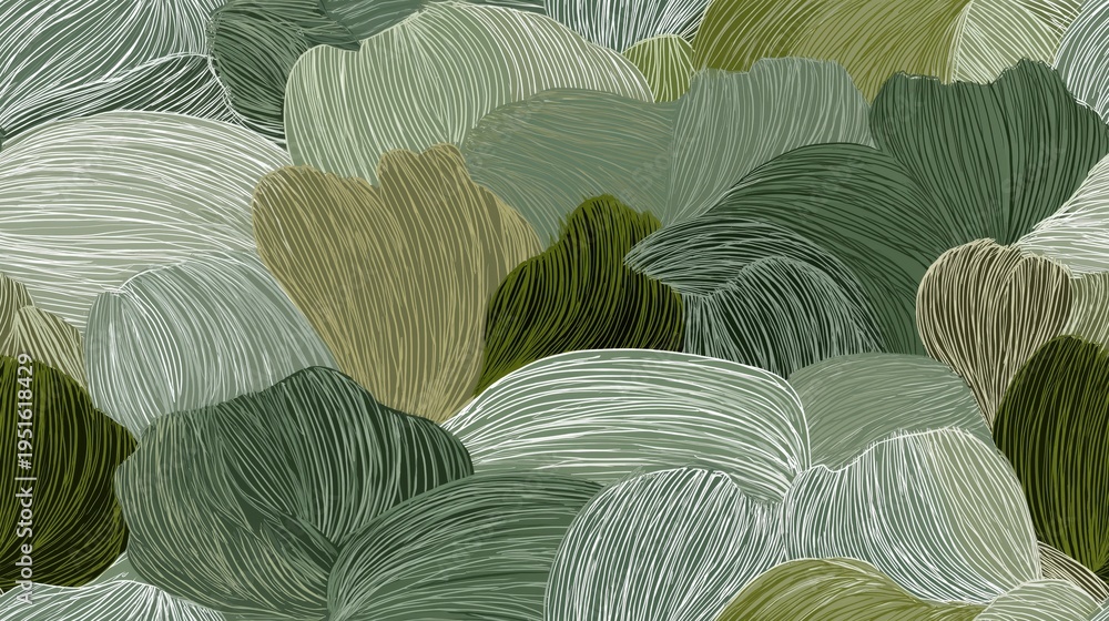 Abstract flowing lines forming a seamless organic pattern. Organic pattern featuring delicate lines creating a smooth leaf-like texture in earthy colors #1951618429