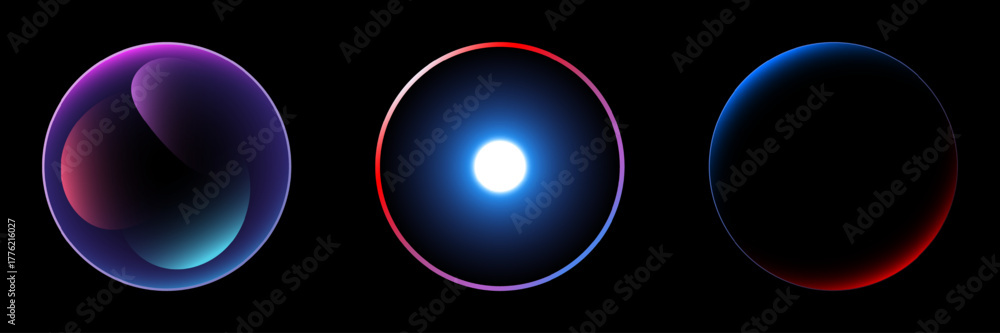 Abstract Futuristic Vector Design: Glowing Cosmic Spheres with Vibrant Gradient Colors and Technology Concept Background #1776216027