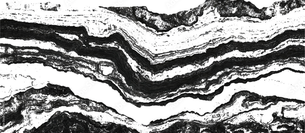 Abstract geology rock strata background with layered sediment texture .black stone formations geological rock fractures and vintage grunge surface design . #1828118369