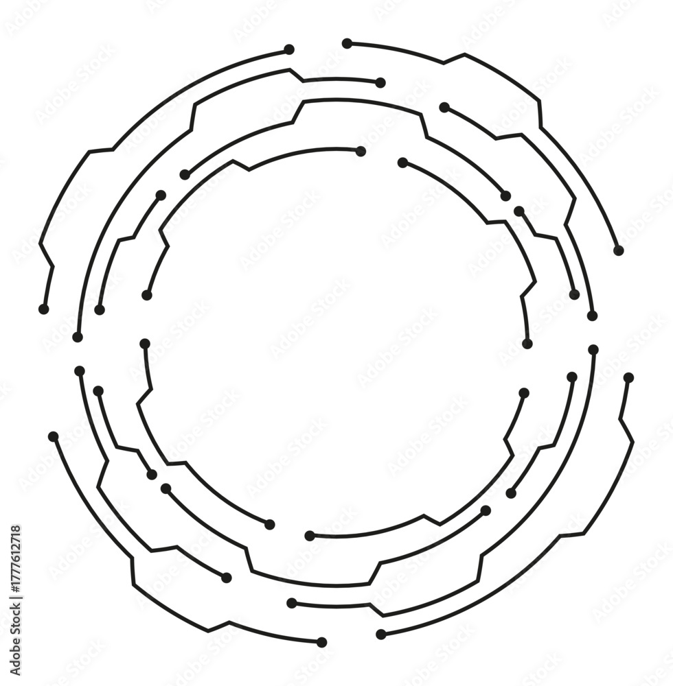 Abstract geometric cyber circle design with interconnected lines and shapes, ideal for technology themes. #1777612718
