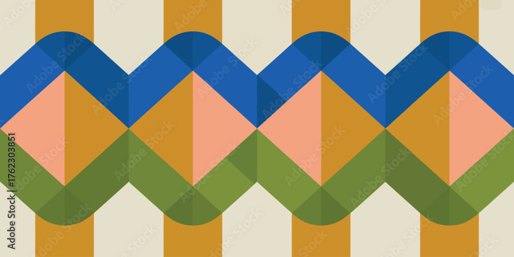 Abstract geometric pattern featuring blue green pink and gold colors in a zigzag repeating design #1762303851