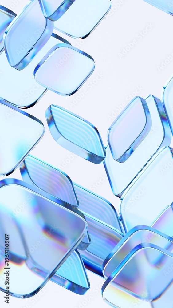 Abstract glass blocks on a white background, vertical 3d render #1967110907