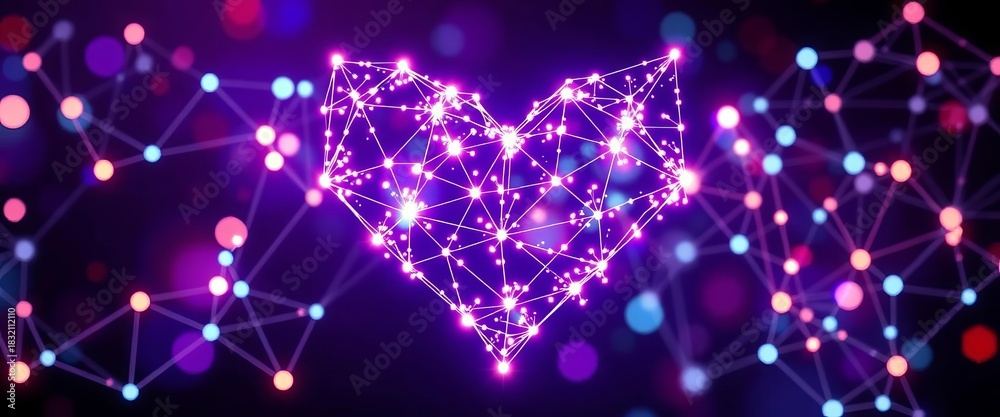 Abstract glowing network nodes forming a heart shape, elegant, network #1832112110