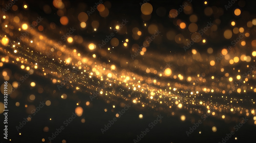 Abstract golden bokeh lights with sparkling dust on black background #1580211986