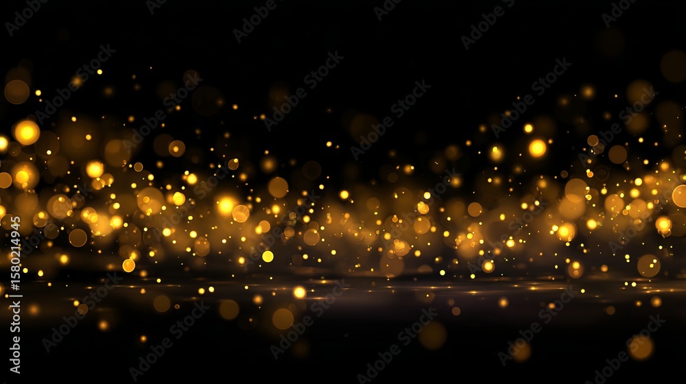 Abstract golden bokeh lights with sparkling dust on black background #1580214945