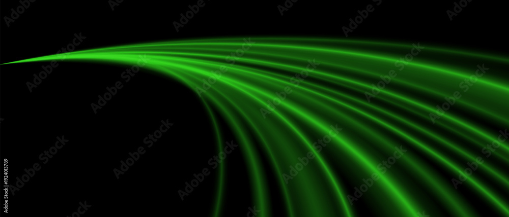 Abstract green light fast speed curve motion on black technology luxury background vector #1924013789