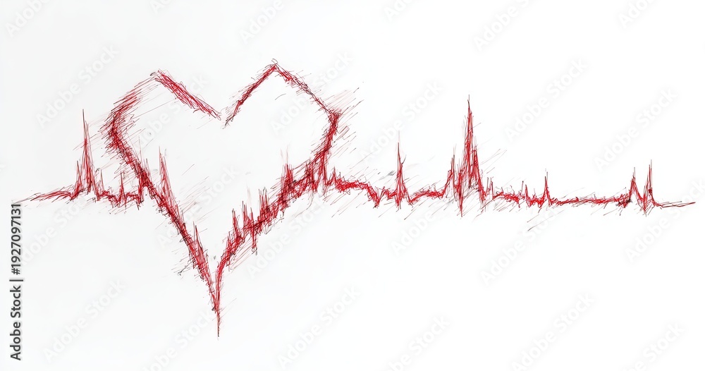 Abstract Heartbeat EKG Line with Red Heart Symbol. #1927097131