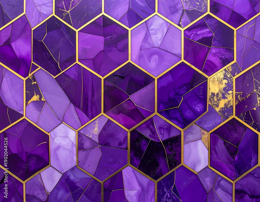 Abstract honeycomb pattern with purple and gold elements #1902044526