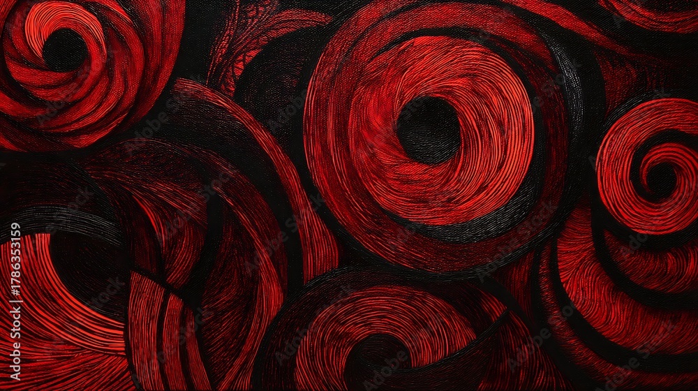 abstract human figure entangled in endless circular patterns, symbolizing anxiety and overthinking, intricate lines, dark red and black tones, emotional tension, #1786353159