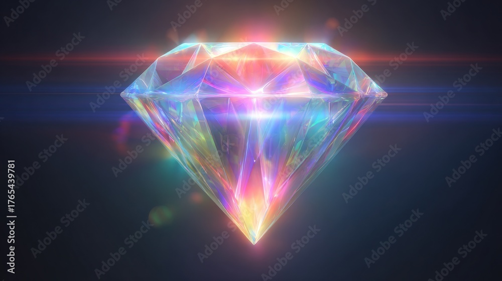 Abstract illustration of a sparkling diamond with colorful light refraction #1765439781