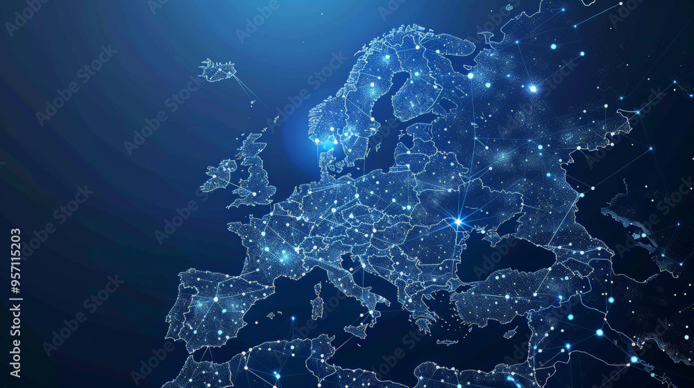 Abstract map of Western Europe, concept of data transfer and cyber technology #957115203