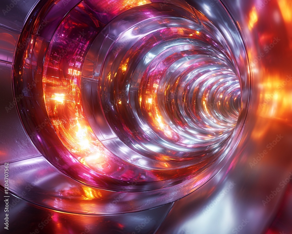 Abstract metallic tunnel with vibrant lights. #1204707562