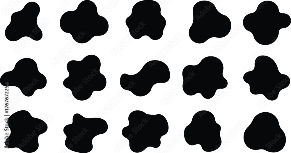 Abstract organic blob shape set in minimalist fluid design, modern liquid forms, smooth gradient elements, geometric, trendy, decorative vector #1767672256