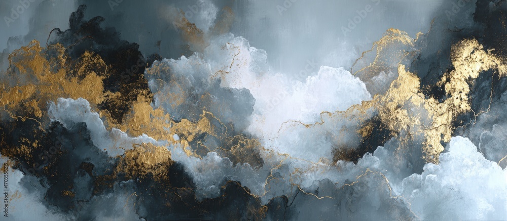 Abstract painting of swirling clouds in shades of gold, grey and black #1703558215