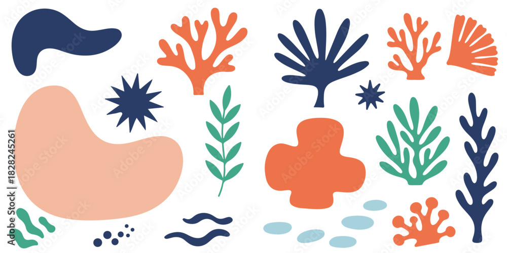 Abstract patterns in retro-modern style with botanical illustration. Matisse's drawing aesthetics #1828245261