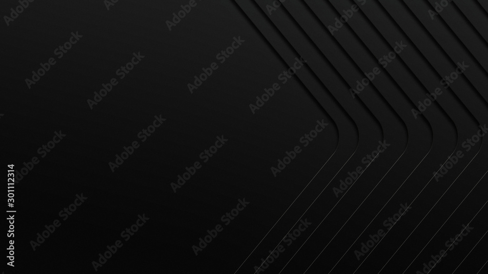 Abstract polygonal geometric banner with black triangle shapes. Luxury dark blue banner. Grey paper material layer with gold stripe background. 3d render #301112314