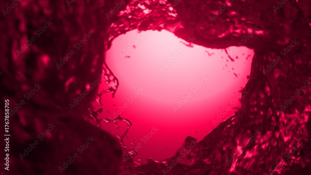 Abstract red liquid forms a heart outline, dynamically swirling against a brighter glowing background, symbolizing love, passion, and artistic fluidity. 3d rendering #1767858705