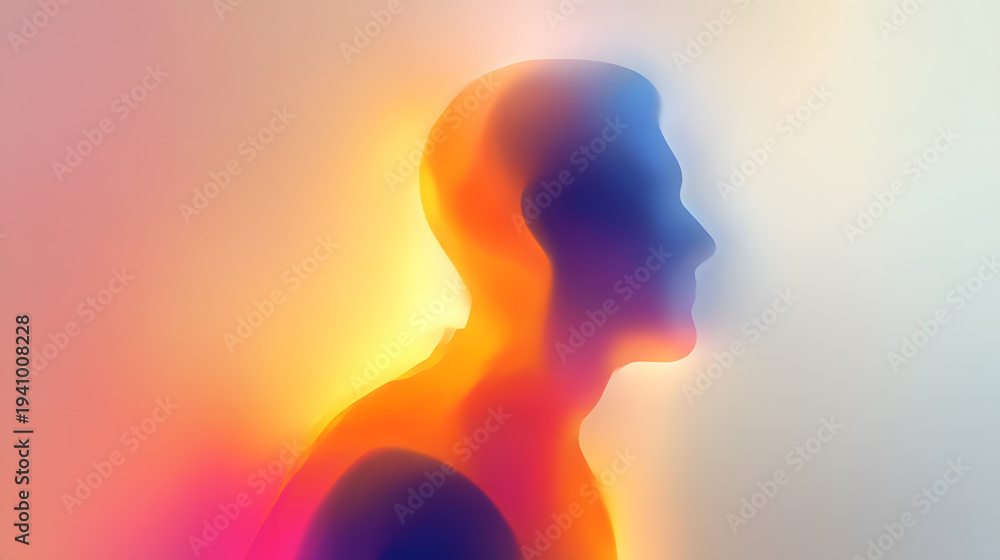 Abstract Silhouette of Human: An abstract, artistic depiction of a human silhouette, with colors of emotion, radiating energy and representing inner thoughts. #1941008228