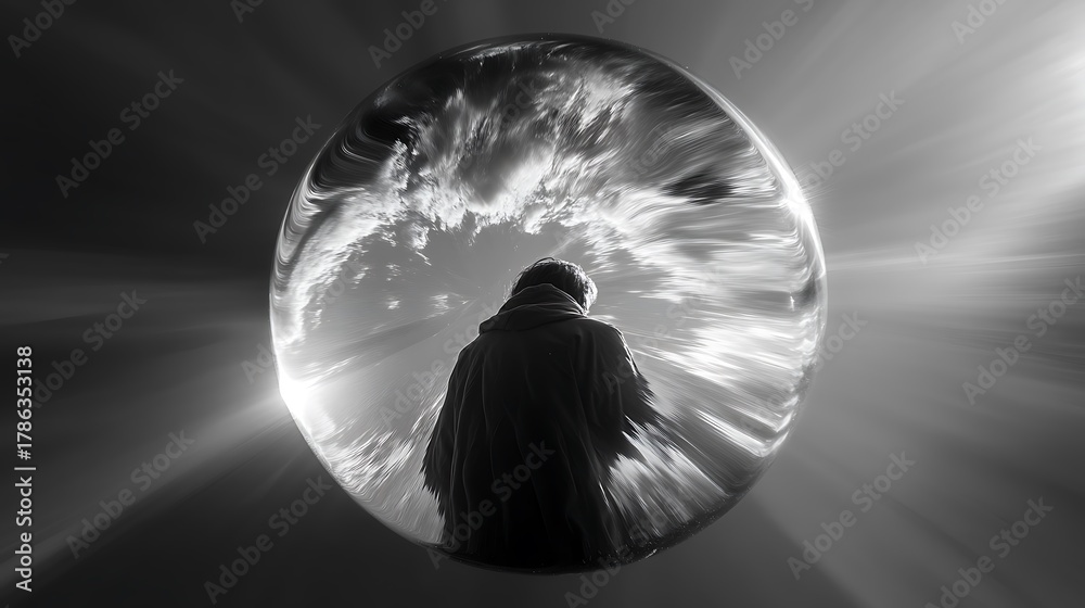 abstract sphere enclosing distorted silhouette, sense of suffocation and tension, sharp contrast, expressive composition, #1786353138