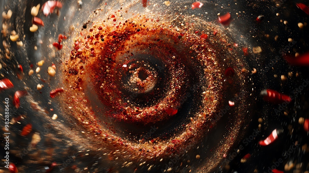 Abstract swirl of red particles, evoking motion, energy, and dynamism. #982888640