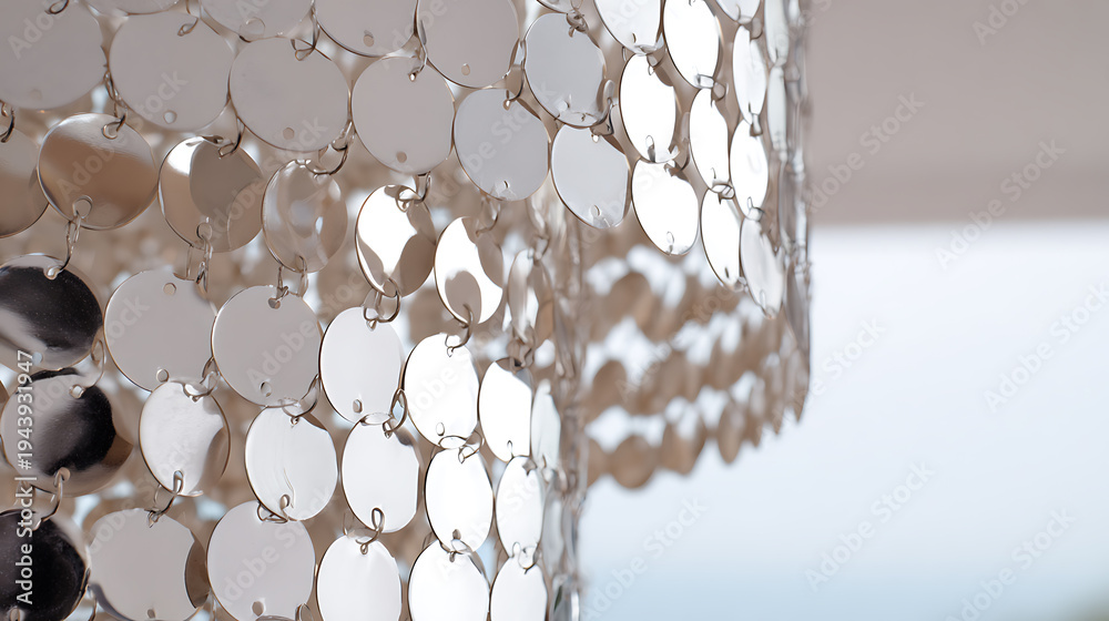 Abstract texture background with shimmering silver metal discs create reflective pattern, luxury decor element, elegant modern design material #1943931947