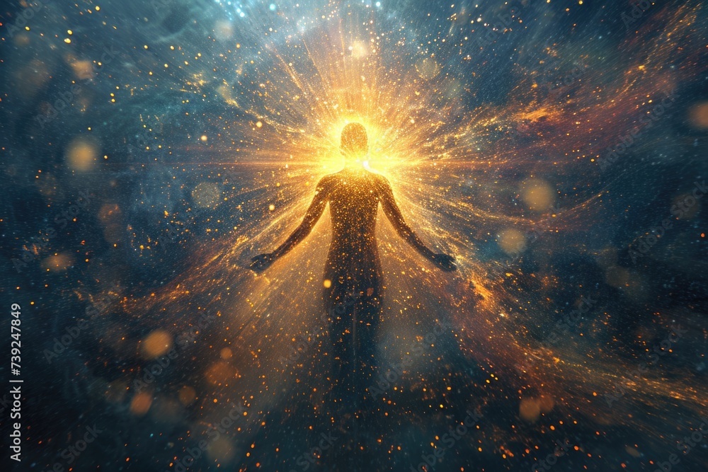 Abstract visualization of a person's aura radiating with rays of creativity, symbolizing the expansive and innovative nature of human potential #739247849