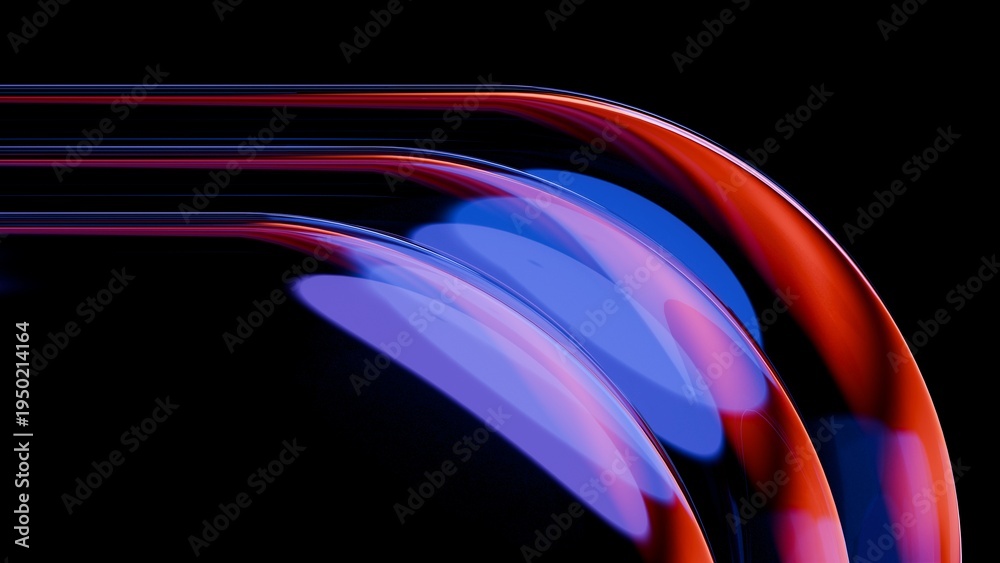 Abstract wavy curved 3d render. Neon glass squares with rounded corners. Neon light. #1950214164