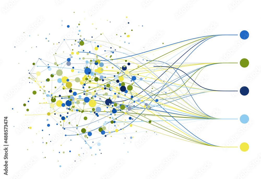 Abstractly arranged colored dots are connected by lines with sorted dots. Data concept. #488573474