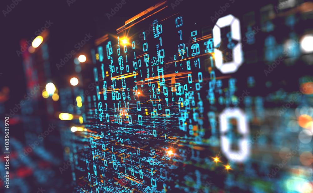 abstracto imagen digital relacionada con la ciberseguridad. Análisis de volumen de datos e industria informática.Ilustración 3d. Estructura de datos y herramientas de información para el negocio de re #1089631970