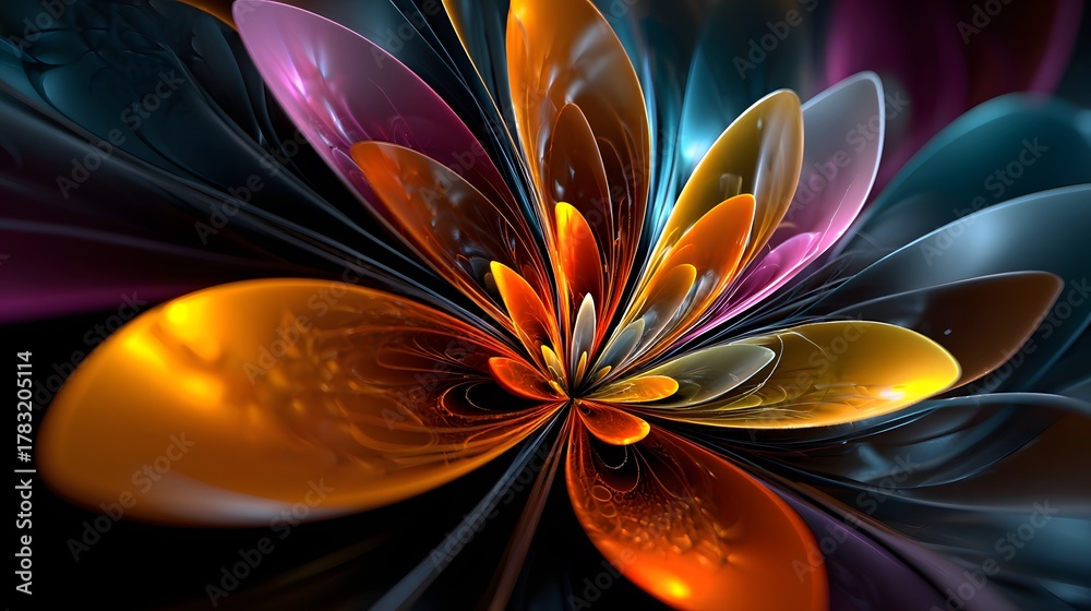 Abstrakte Blume mit metallischem Glanz und Farbenpracht #1783205114