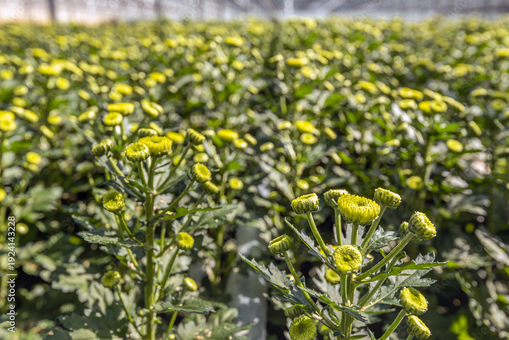 Abundant number of flower buds in the chrysanthemum plants of a Dutch greenhouse. #1924143228