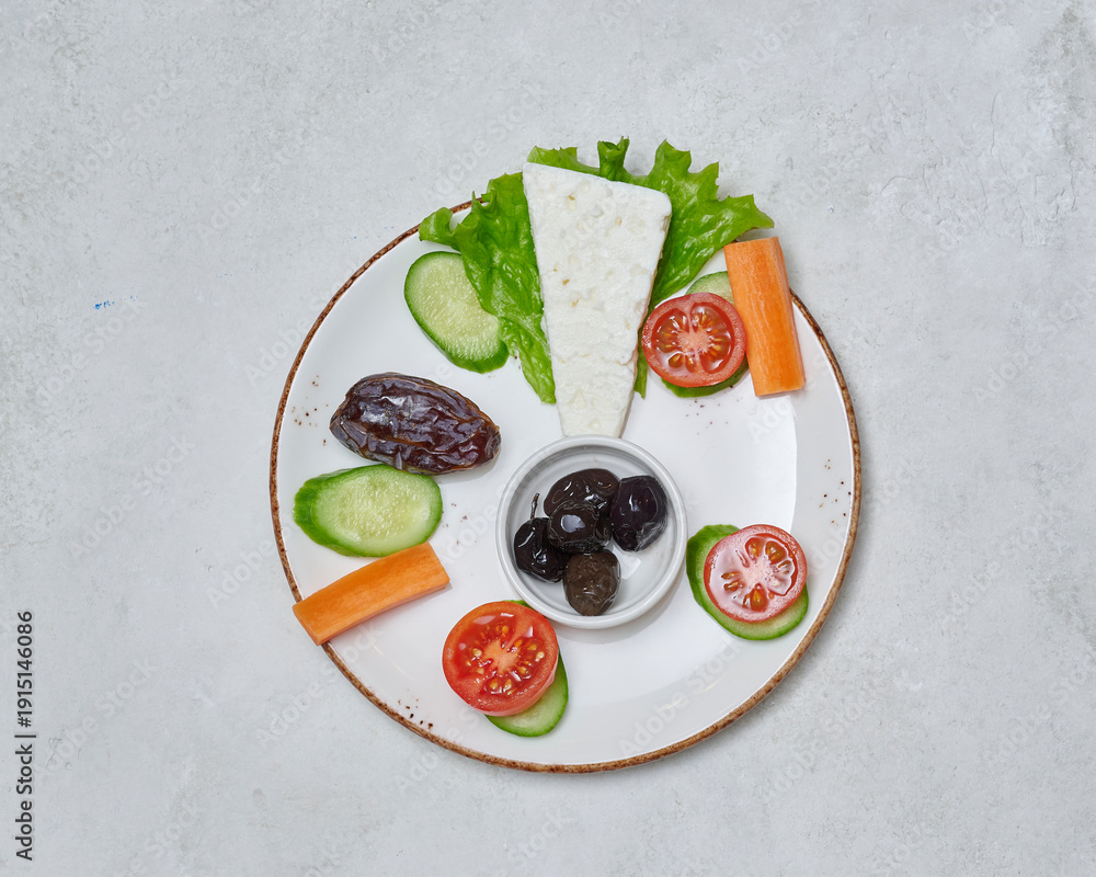 Abundant Ramadan table with mixed grill, lentil soup, fresh salads, and traditional Turkish dishes served elegantly. #1915146086
